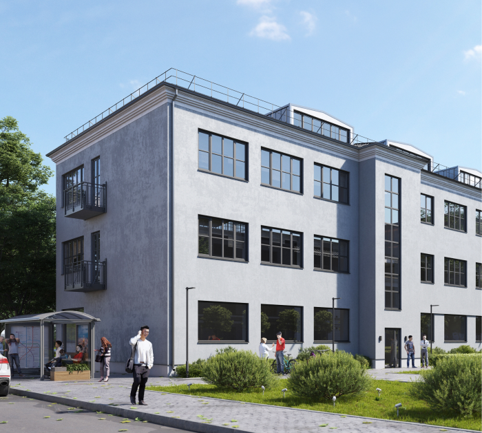 Корпус предполагает размещение street-retail’а на первом этаже и офисных пространств на втором, третьем и четвертом. Первая часть будет введена в эксплуатацию во II квартале 2023 года.